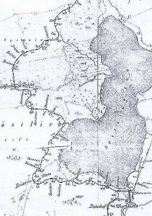 heutigen Lyraweg ging es weiter zum Südende des Sees. Hier verzweigte